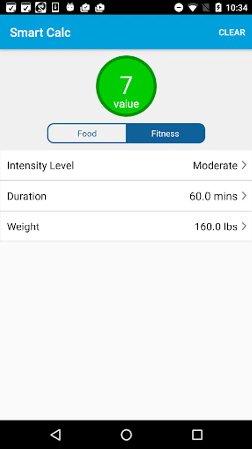 The app also calculates the New Fitness Score Values based on Intensity, Duration, and Current weight values plus decimal points for accuracy!