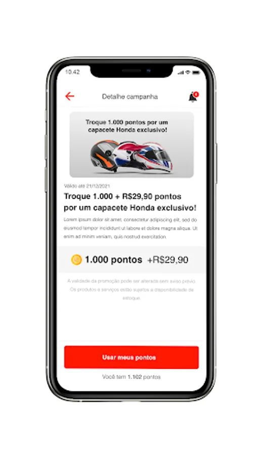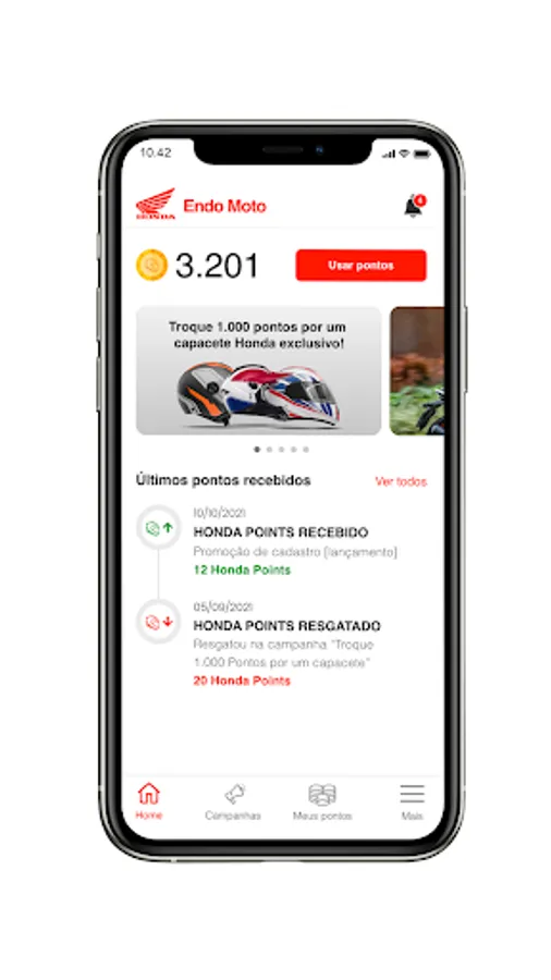 With each purchase and interaction you accumulate points and can exchange them for exclusive products or services. Boutique items like T-shirts, Jackets, Official Honda helmets and services like Oil Change, Brakes, Service and more!