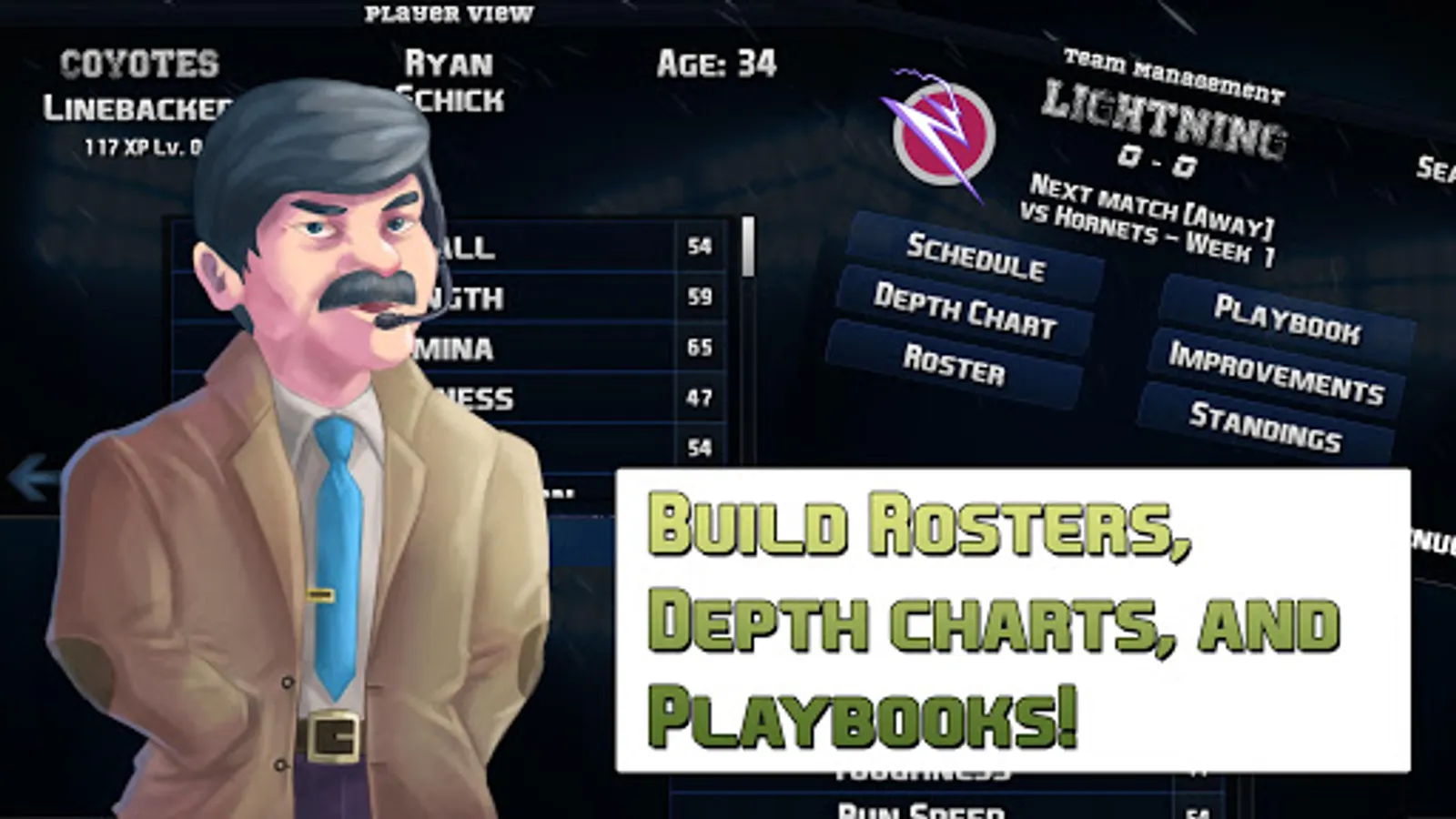 • Player, play strategy, and depth chart management
