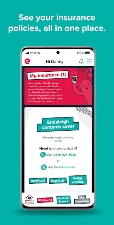 Confirm the insurance cover provided by your accommodation provider, protect and save with student-friendly products and get 24/7 access to your insurance policies. Plus, get easy (and free!) access to wellbeing support — all at the palm of your hand, anytime, anywhere and on any device.