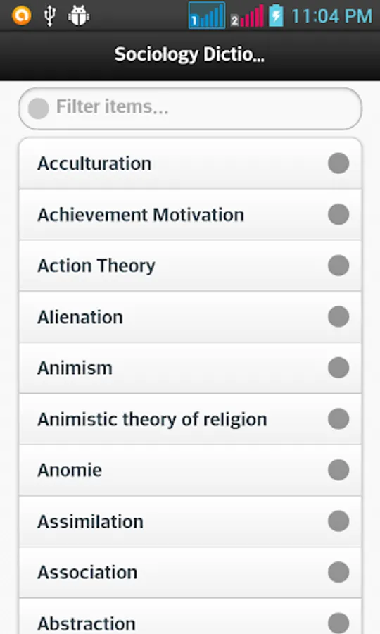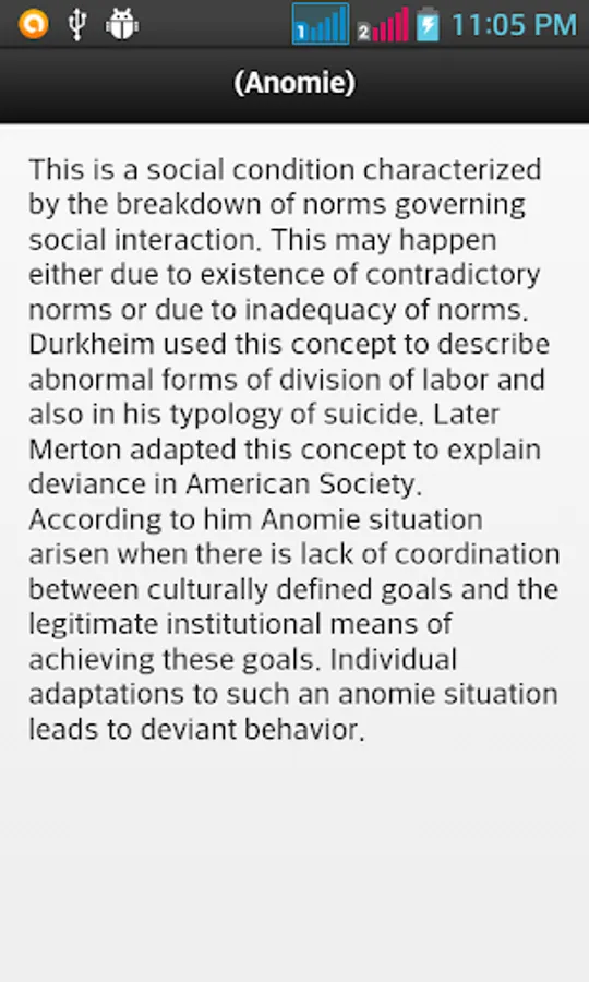 In this dictionary each word is related to study of human societies with short definition that helps you to understand the word in easy manner. It is helpful for education and for enhancing your knowledge purpose. Search option is also available to find out the word.