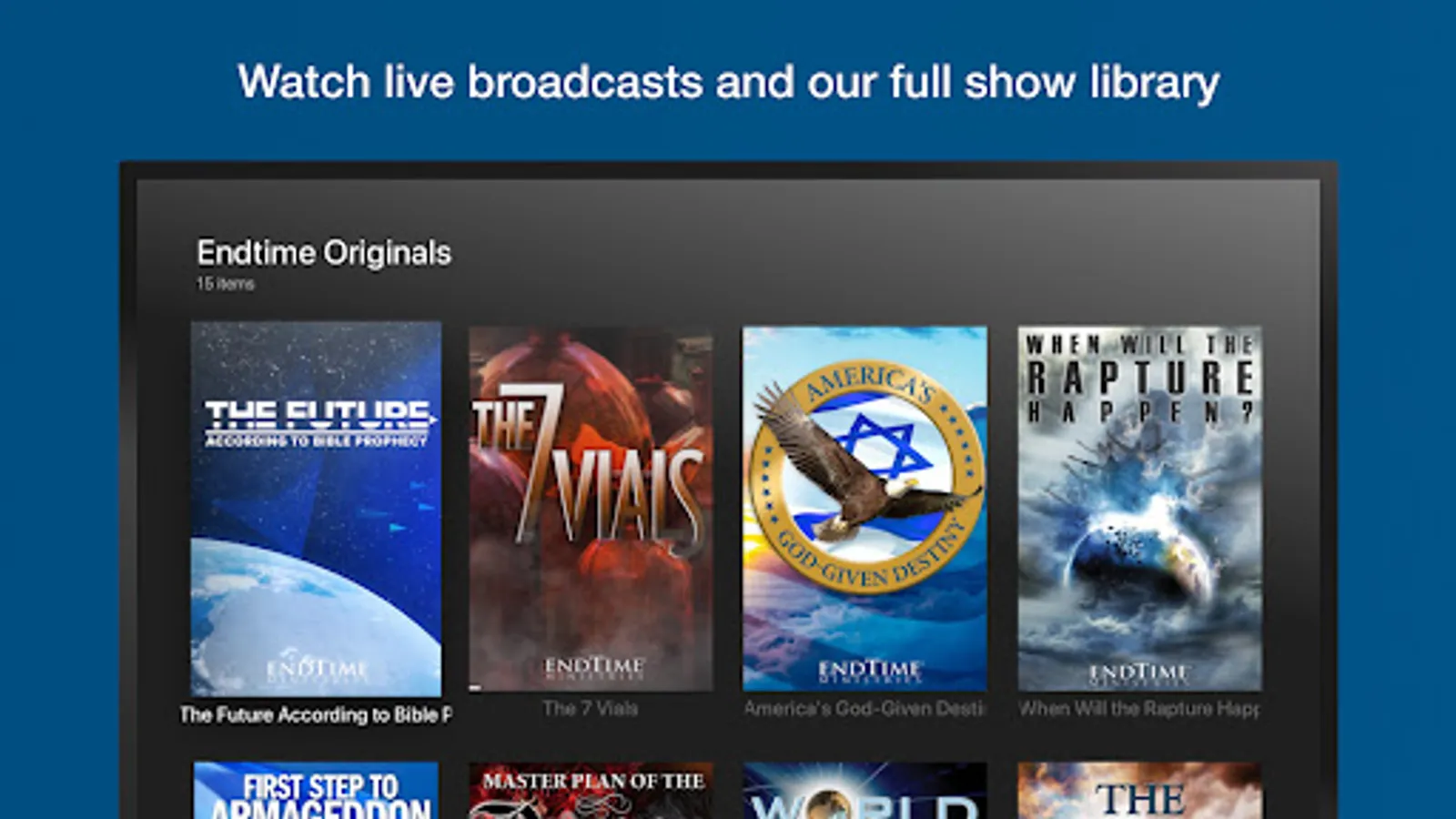 To access all features and content you can subscribe to Endtime+ on a monthly or yearly basis with an auto-renewing subscription right inside the app.* Pricing can vary by region and will be confirmed before purchase in the app. In app subscriptions will automatically renew at the end of their cycle.