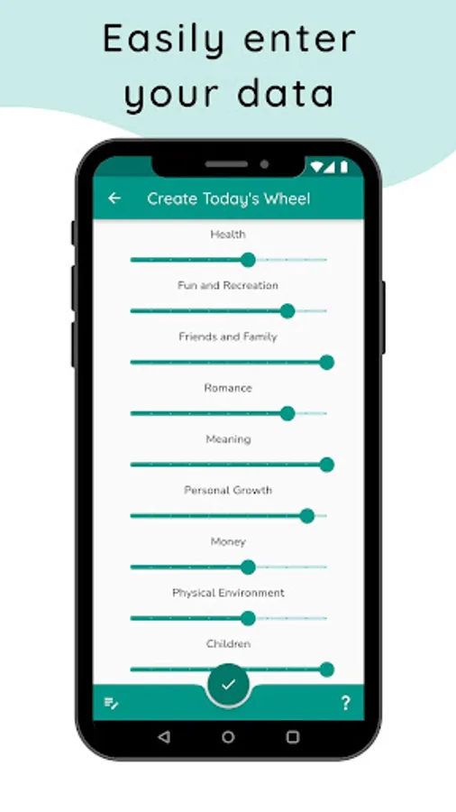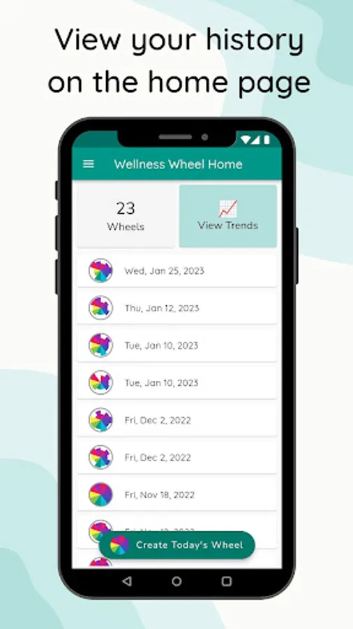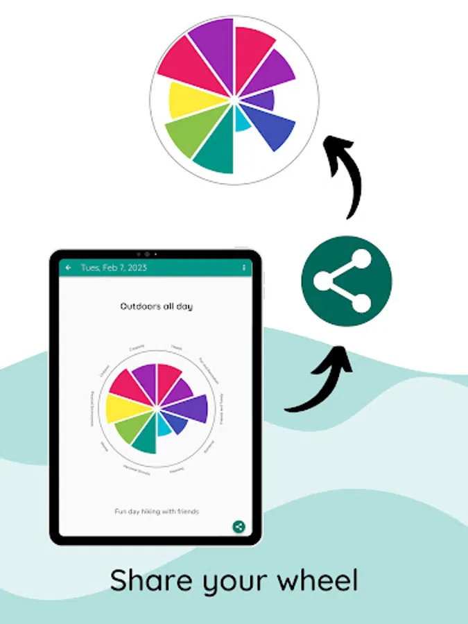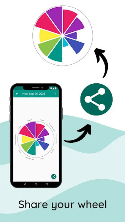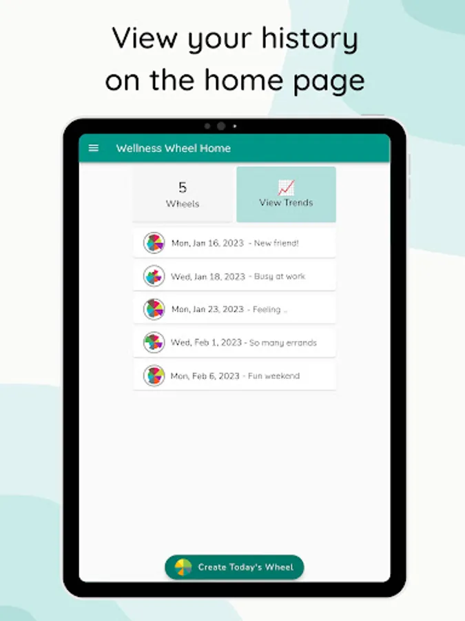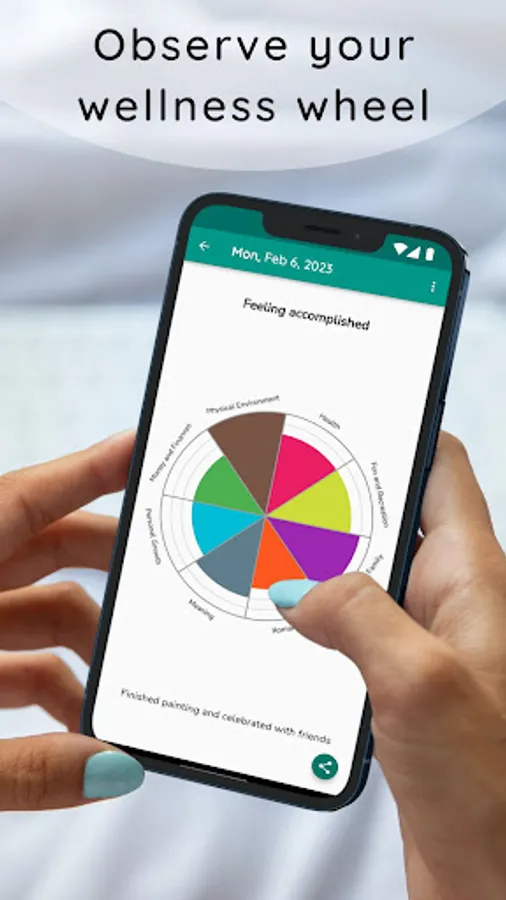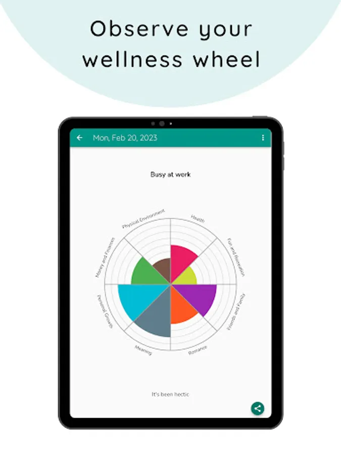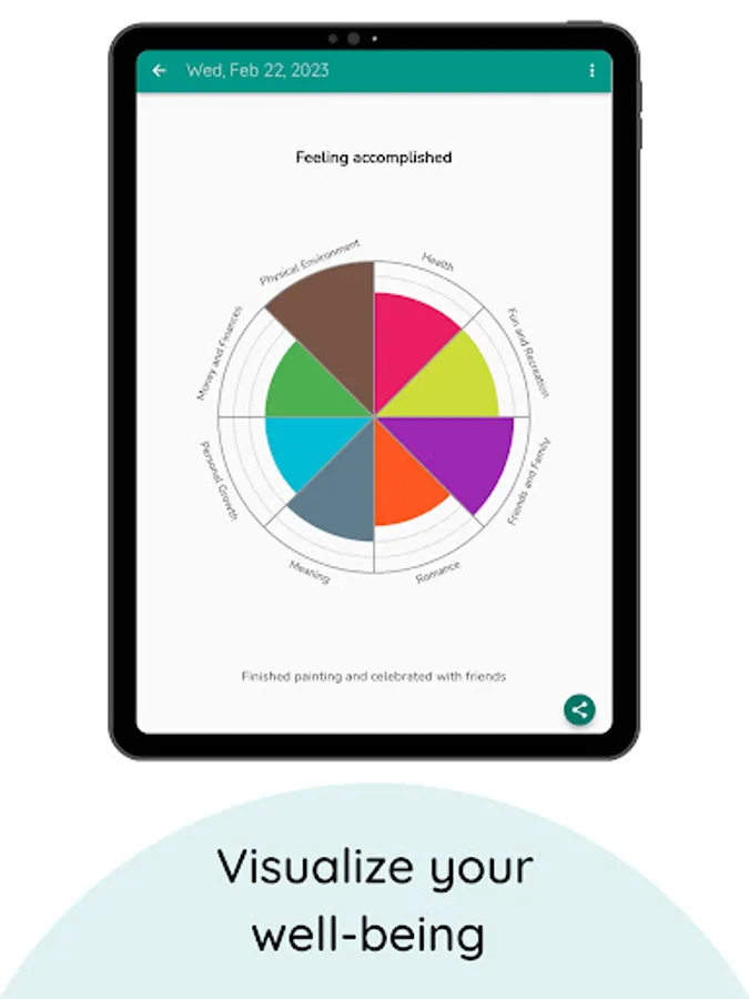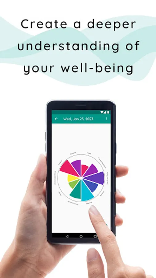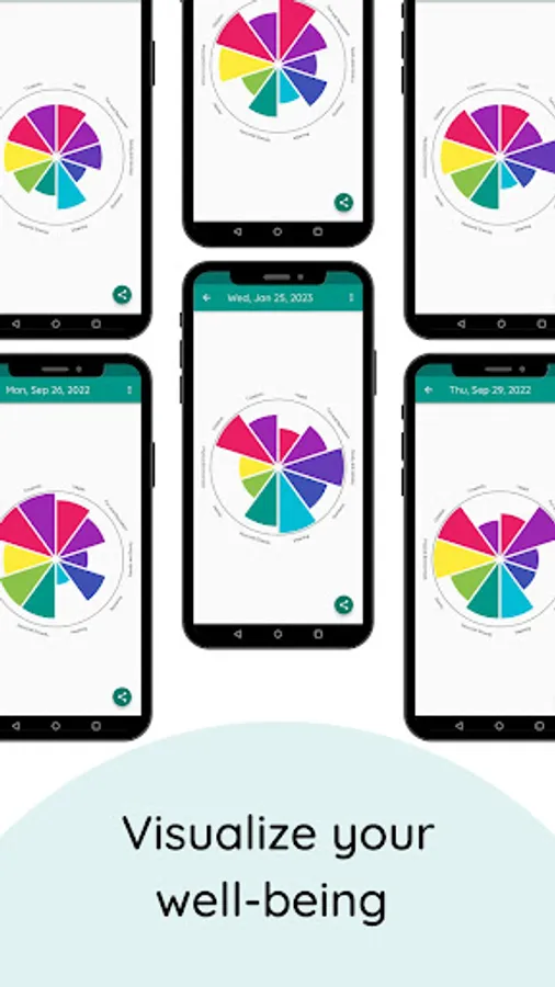 Track your well-being in multiple categories and review your history of entries using a wheel visualization.