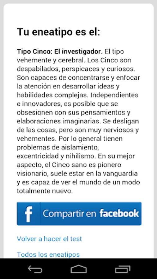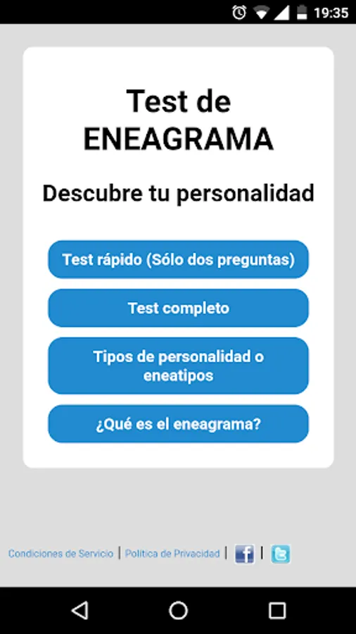 With this application, you can perform two types of tests to discover that enneatypes best fits you. Both free and without registration.