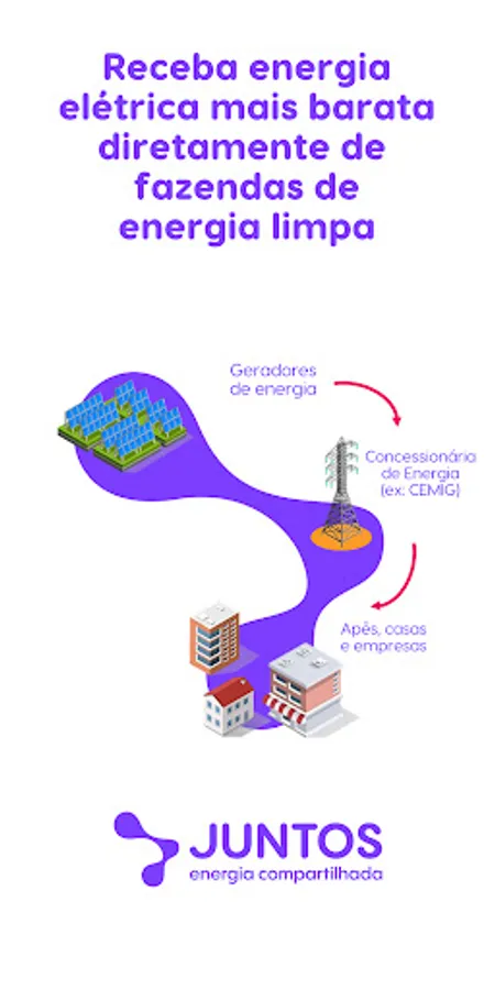 Juntos was born to democratize access to clean energy. We are a marketplace that connects mini and micro solar energy producers and we send the generated credits to apartments, residences and companies directly through the CEMIG network in Minas Gerais. Just do the digital portability in the app to save more than one electricity bill per year!