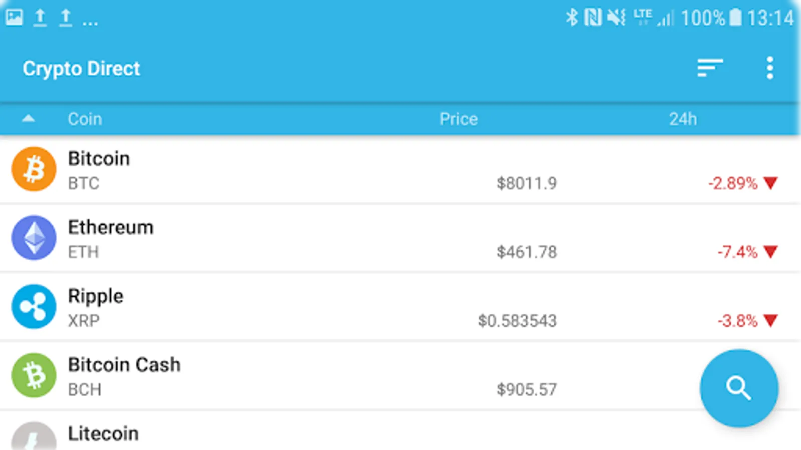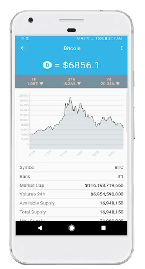✔ Track hourly, daily and weekly coin price changes.