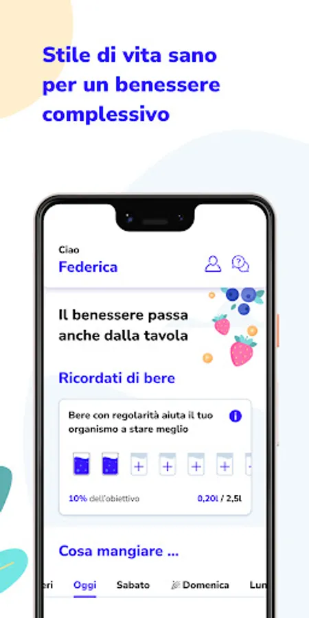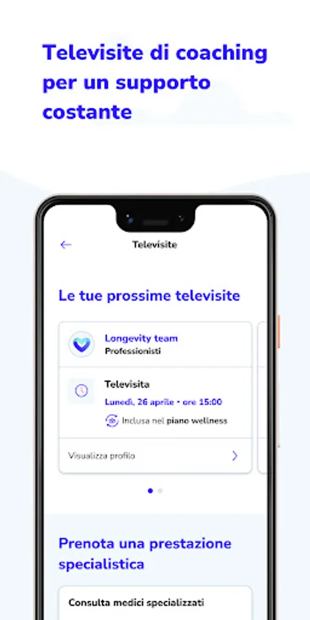 Innovative Clinical Governance Wellness App connected to a Telemedicine platform. The App allows you to monitor your own well-being parameters and achieve goals agreed with a coach on televisit. The App requires the user to enter some manual data and record other parameters automatically using some fitness devices. The App allows you to carry out televisits with coaches or nutrition professionals aimed at improving well-being, to upload, exchange some documents and diagnostic tests and exchange them with an operations centre. The App focuses on 5 fundamental parameters for monitoring well-being: