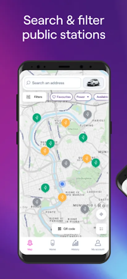Enel X Way mobile app allows you to manage all your electric or plug-in hybrid car’s charging needs from wherever you are. You can search and filter nearby charging stations based on availability, max charging power, or plug type with the live map. Download the app for free and register in just a few clicks.