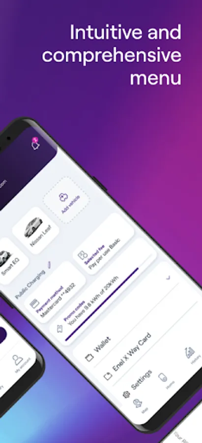 • Manage charging at home. Configure one or more Enel X Way JuiceBox chargers directly from the mobile app.