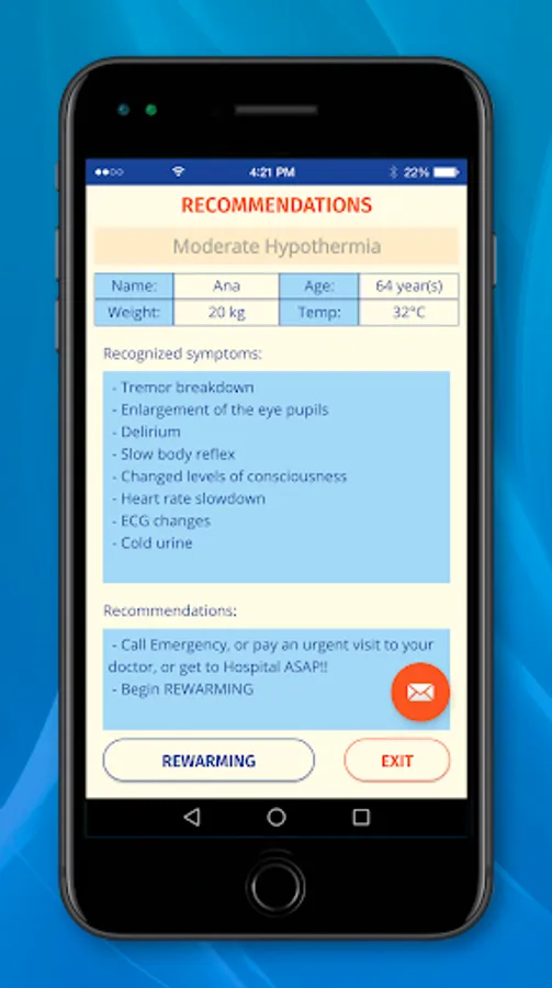 IMPORTANT: although it was developed based on referenced professional and academic works considering hypertermia, hypotermia and fever symptoms (see ABOUT), FEBRI app is not a medical diagnostic tool, nor it is substitute for visiting your doctor - it is a home treatment app, which offers guidance when specialized medical help is not available at the moment.