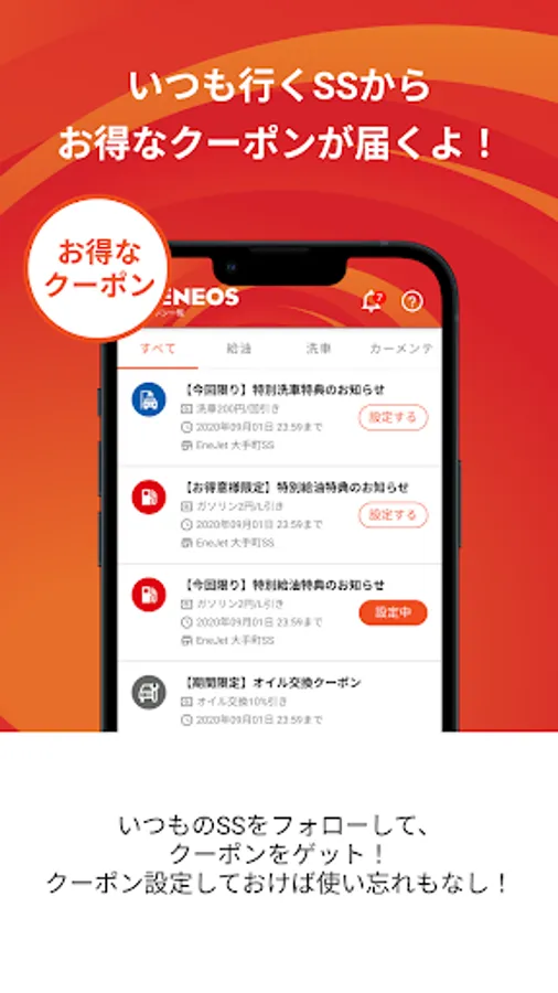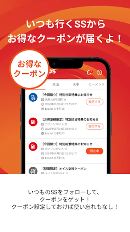 ◆ You will receive a great coupon from the ENEOS SS that you always go to!