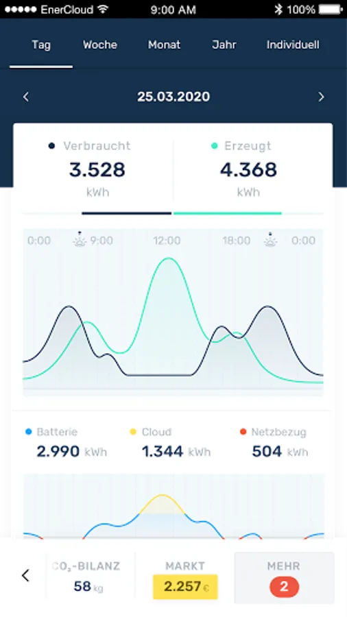 Photovoltaics in your pocket? This is now possible with the Pfalzwerke EnerCloud! You can now see how much electricity you generate yourself and how much you use in real time at a glance in the app. You can transparently see how energy self-sufficient you are already on the road and how much CO2 you have saved.