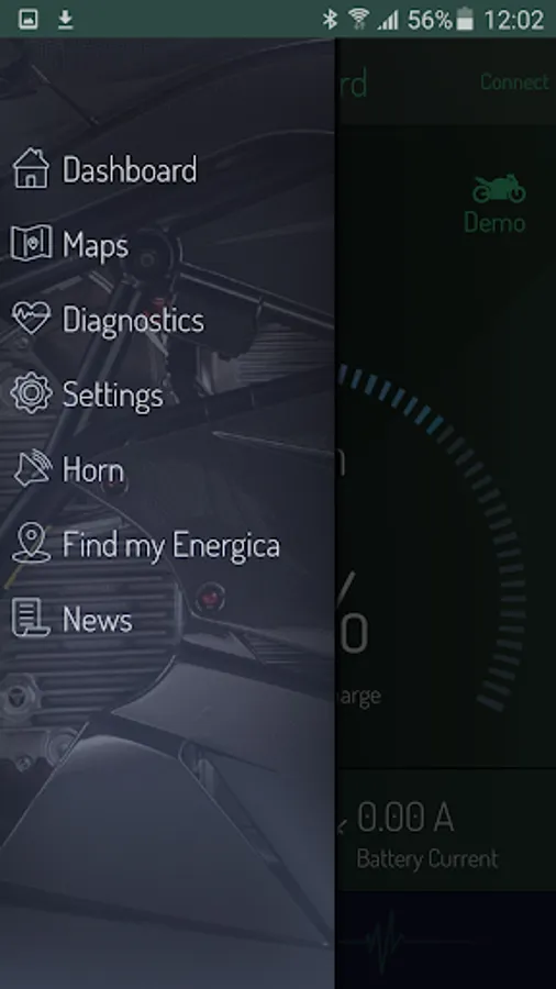 MY Energica App connects directly with the motorcycle through smartphone or tablet and it's able to send and receive data dialoguing with the Vehicle Control Unit of the vehicle. The APP uses Bluetooth system, standard either on Energica Ego, Eva and SS9.
