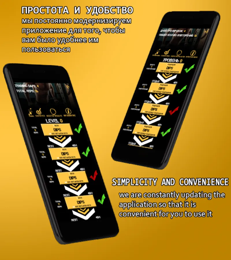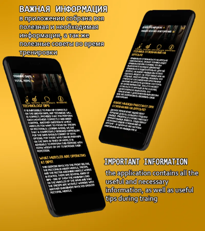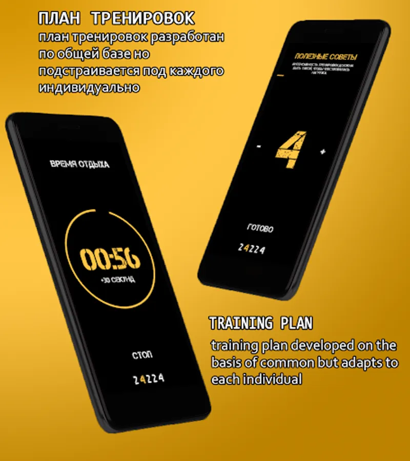 This course is designed for the average person maximum. Of course, to achieve such results will have to seriously work, but this is not fiction, but a very real indicator. With our application, organizing your workouts will be much easier.