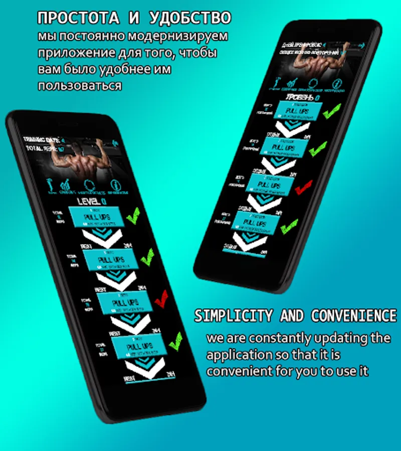 This course is designed for the average person maximum. Of course, to achieve such results will have to seriously work, but this is not fiction, but a very real indicator. With our application, organizing your workouts will be much easier.