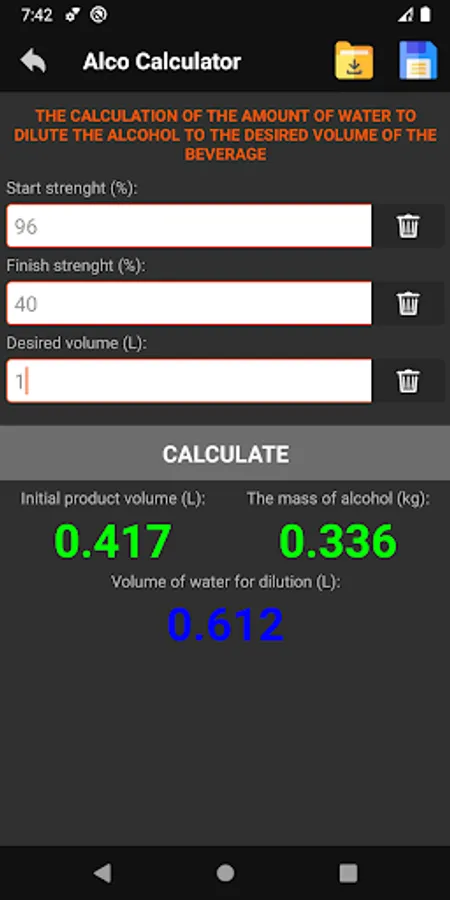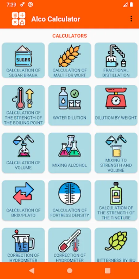 Calculator for distillers, moonshiners, brewers and anyone who deals with homemade drinks.