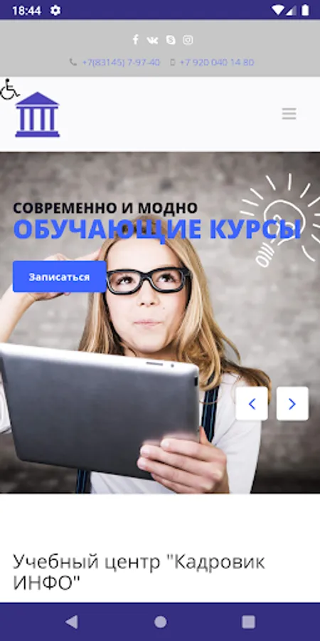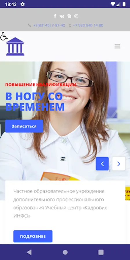 The training center "Kadrovik INFO" has been working in the market of educational services in Kstovo since 2013 and offers an integrated approach in solving the tasks set by the Customer, high professionalism of the team, accuracy in the performance of contractual obligations. Own material and technical base, availability of licenses, membership in the All-Russian Chamber of Commerce and Industry of the Nizhny Novgorod Region, its own periodical - all this undoubtedly ensures the high quality of work performed and services rendered.