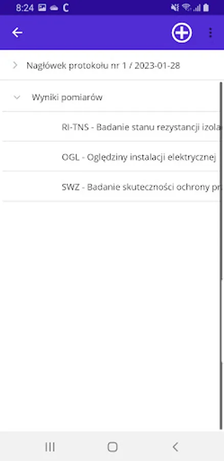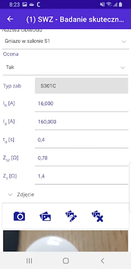 The Measurements tab allows you to save the measurement results, select the protection to check the short-circuit loop impedance and send the results to the computer.