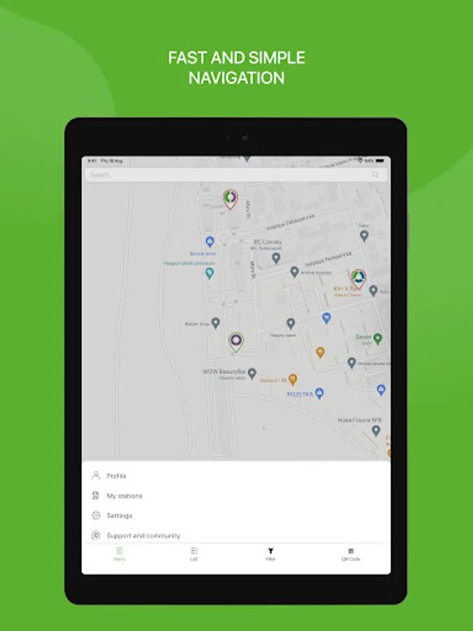 Every charging point in one app. The mobile application was created to make charging as convenient as possible. Using the interactive map and filters, you can always find the perfect place to charge. Looking for the nearest charger? Or a specific socket? Need to find a place to dine or stay overnight and charge your electric vehicle? We have all. Simply select a location and control the charging process.
