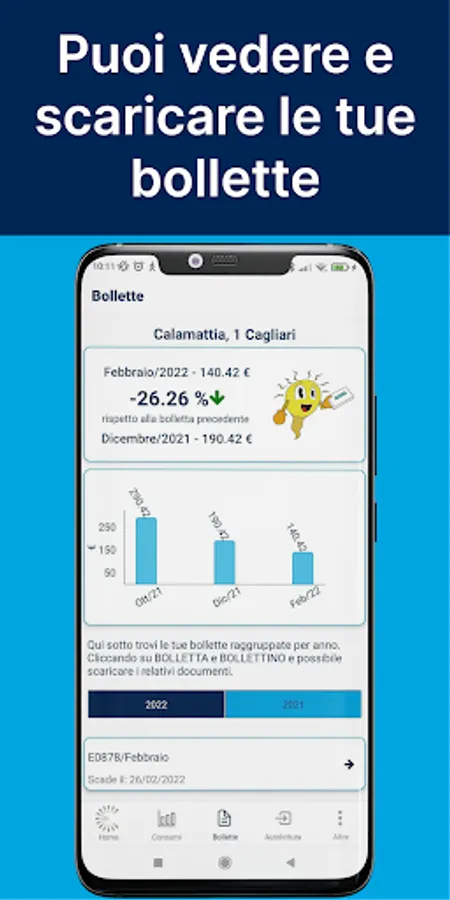 In the dedicated section you can consult and download a copy of your bills and any postal bulletins, but it does not end here: you will also find a summary of the amounts of the invoices issued and the comparison chart to help you improve energy use and save consciously .