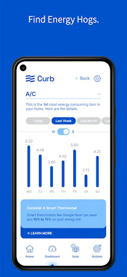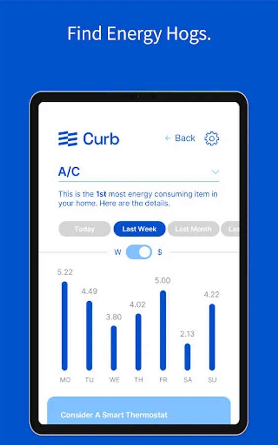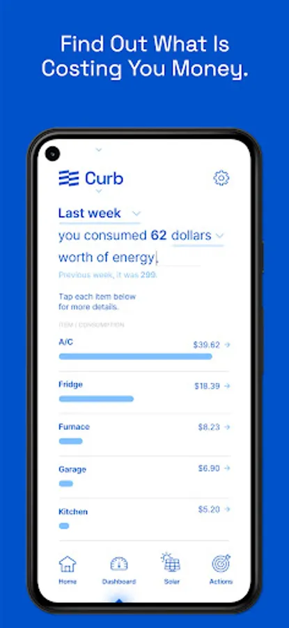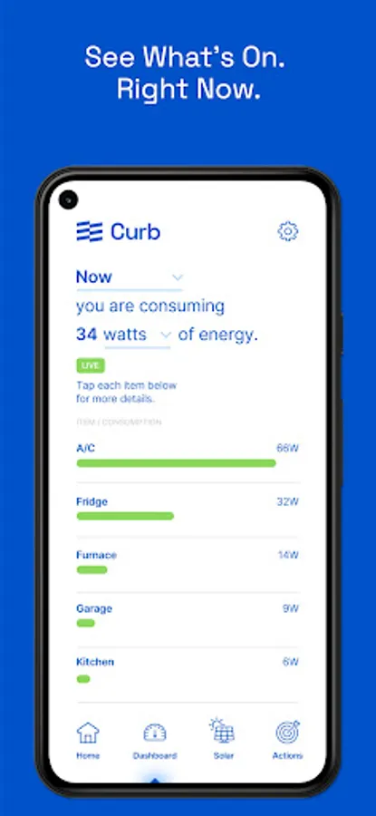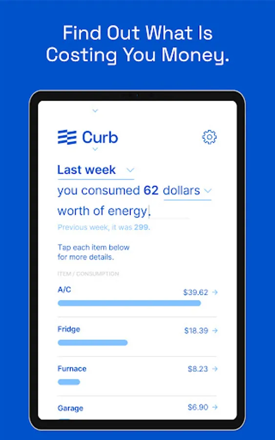 The Curb app connects to a Curb energy monitor, which is installed on your home’s electric panel to give you actionable data on how your home is using energy.