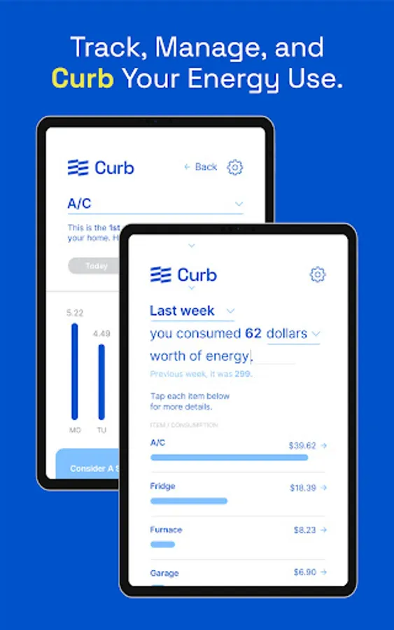 Curb is your home’s energy dashboard, where you can track, manage, and curb your energy use to lower your energy bill and your environmental footprint.