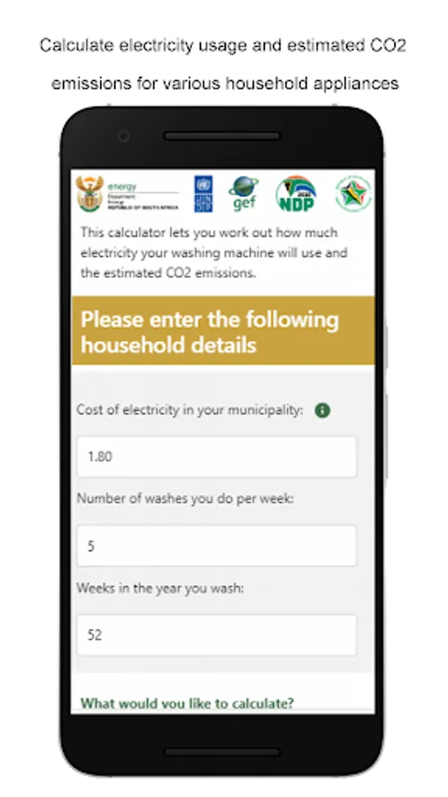 The app also estimates the CO2 emissions of running various appliances. The app uses an emission factor of 0.9958 tCO2/MWh. This emission factor is derived from the initial research on developing a standardized baseline for a grid emission factor for the South Africa power pool .