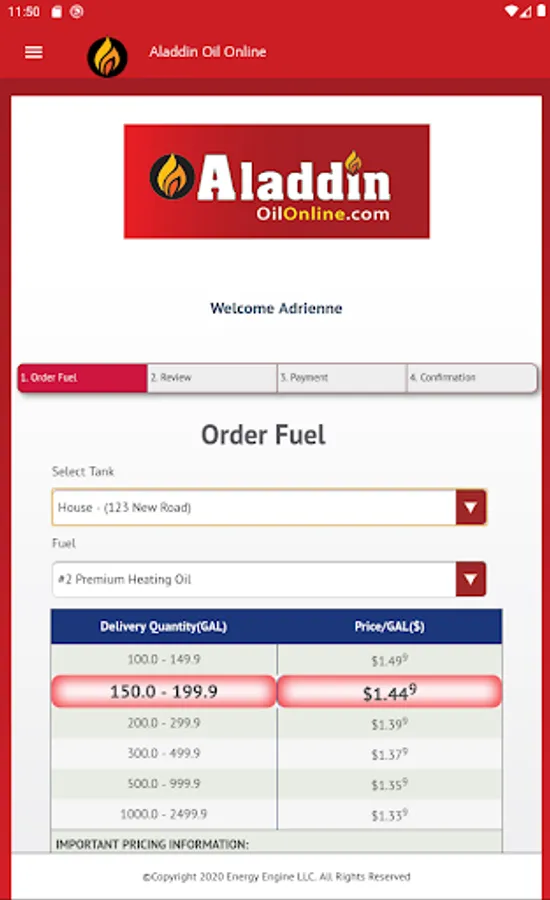 Fast and easy orders 24/7/365 at the touch of your finger. Don’t pay extra for automatic delivery overhead, manage your own deliveries. You choose how much and the delivery date. The more you order the more you save. Use the quick repeat order function for your convenience too! Order a specific number of gallons or order a fill. If you order a fill, you will be charged based on your tank size and right after delivery your card will be credited back for any gallons that did not fit in your tank! It’s heating oil made easy and at your convenience.