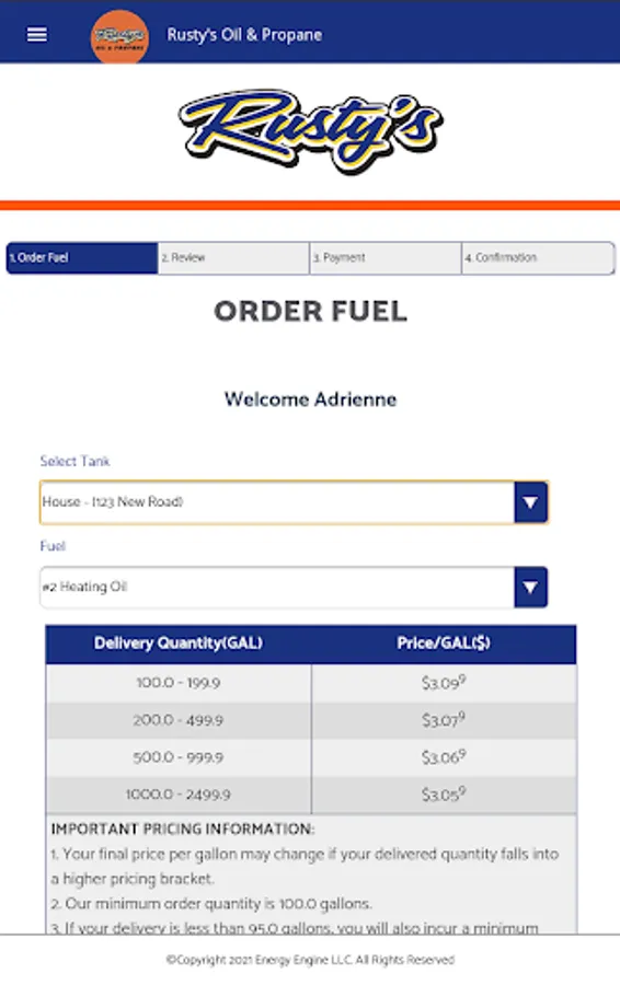 The Rusty’s Oil and Propane App is a simple and convenient way to order heating oil, manage your account, track deliveries, and manage your fuel bills. Available across devices, our app is designed to make your life more convenient and give you access to your Rusty’s account anytime and from anywhere.