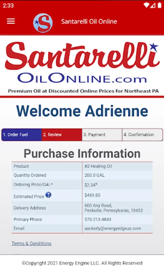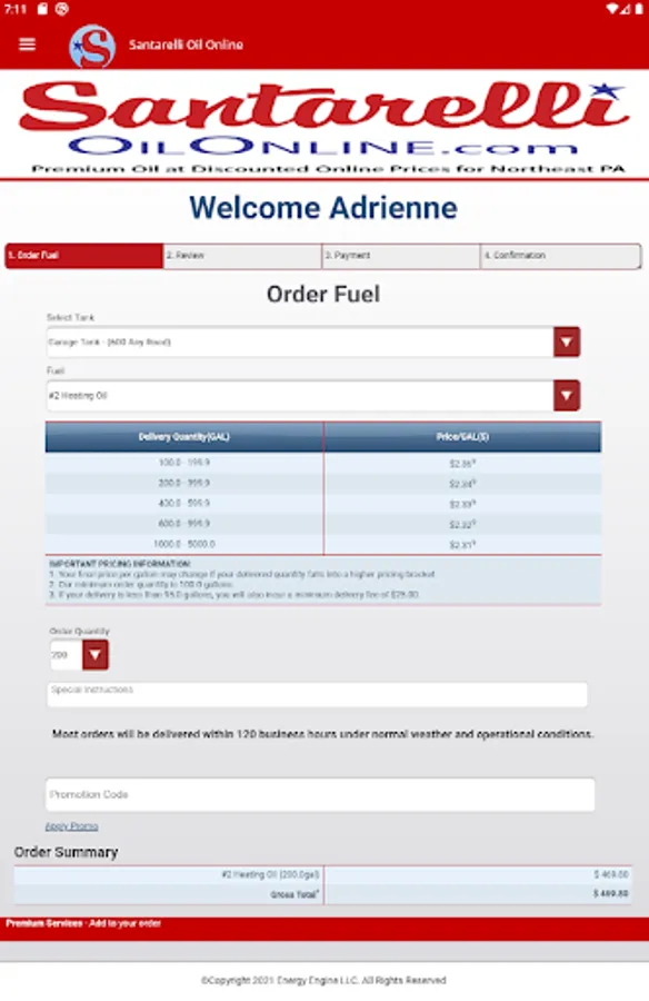 of your finger. Don’t pay extra for automatic delivery overhead, manage your own deliveries. You choose how much to be delivered, the more you order the more you save. Use the 1-click repeat order function for your convenience too! Order a specific number of gallons or order a fill and you will be charged based on your tank size and right after delivery your card will be credited back for any gallons that did not fit in your tank! It’s heating oil made easy, at your convenience.