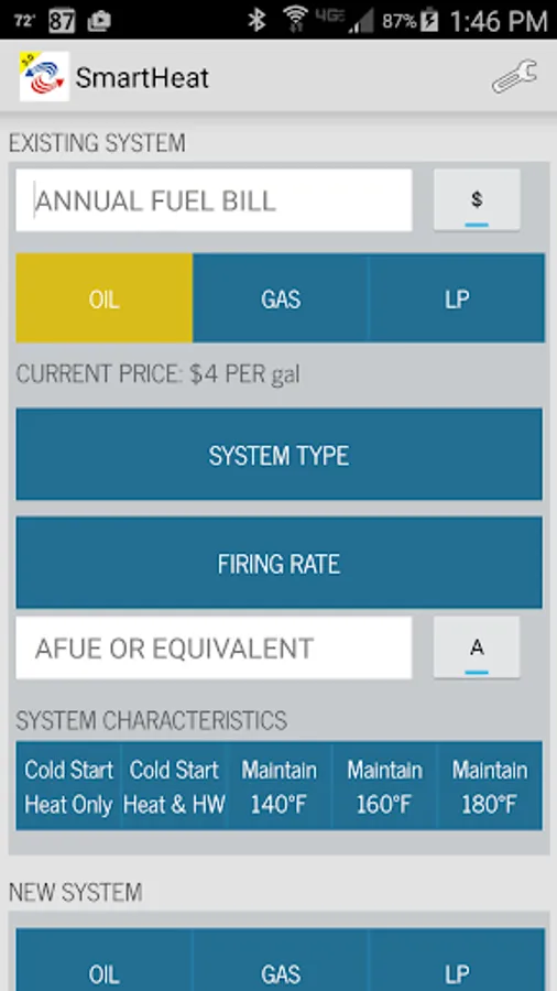 SmartHeat™ estimates the deep energy savings possible with a heat and hot water system upgrade using United States Department of Energy Lab studies and calculation methods. This app makes these estimates quick and easy with heat loss based on fuel use...in just minutes you'll know how to estimate savings! AFUE labeling of heat and hot water appliances alone fails to indicate actual annual performance, and upgrades over AFUE calculations include estimates of the impact of high efficiency controls, thermal purge, oversizing effects, idle loss, hot water efficiency, and estimates of chimney and draft related losses.