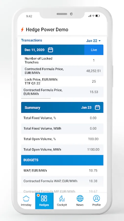 Taking positions online, locking volumes, unlocking volumes, in a very easy way, even with complex contracts.