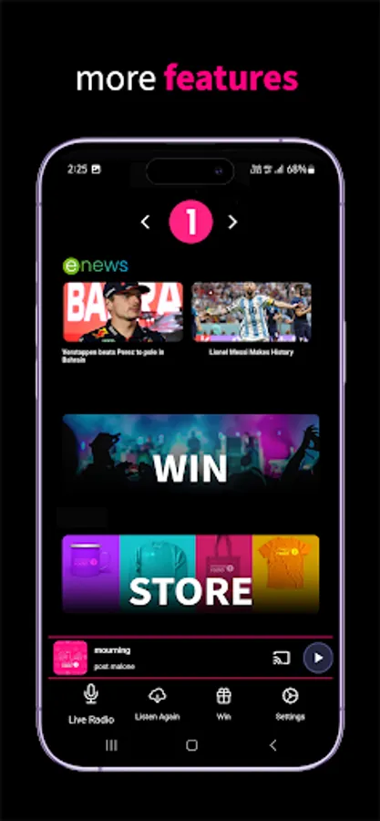 The Music heard on Studio 1-FM includes: Hot A/C (Pop), Classic Rock, Classic Hits, Dance, Old School R&B, and Hip Hop.