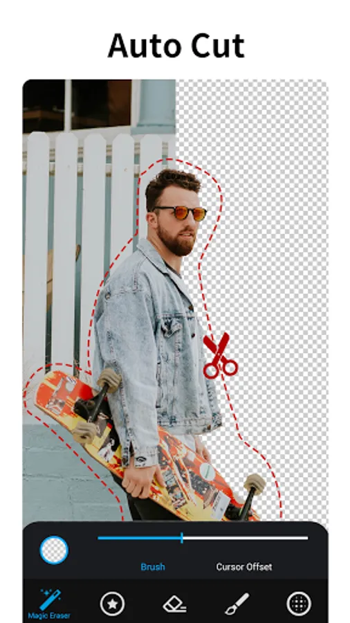 With MagiCut, you can create stunning pictures easily. Auto cut and paste will select and extract objects through detect so that you can paste onto any background. Use montage editing techniques, put yourself next to any celebrity you like or teleport yourself to any corner of the world. For entertainment only.