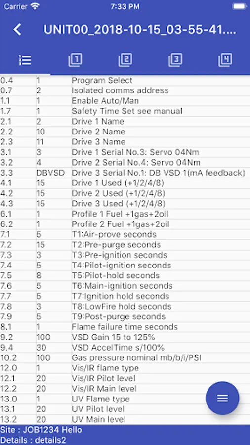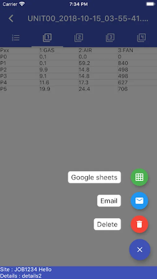 The CBU file is stored in the phone and can be viewed and emailed from within the app.