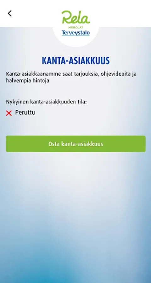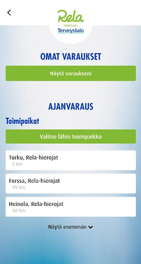 Rela masseurs are Finland's widest chain-focused chain and market leader in its field. The cornerstone of our business is loyalty, where you get all the massage for half price! This application brings both loyalty and other essential functions directly to your phone.