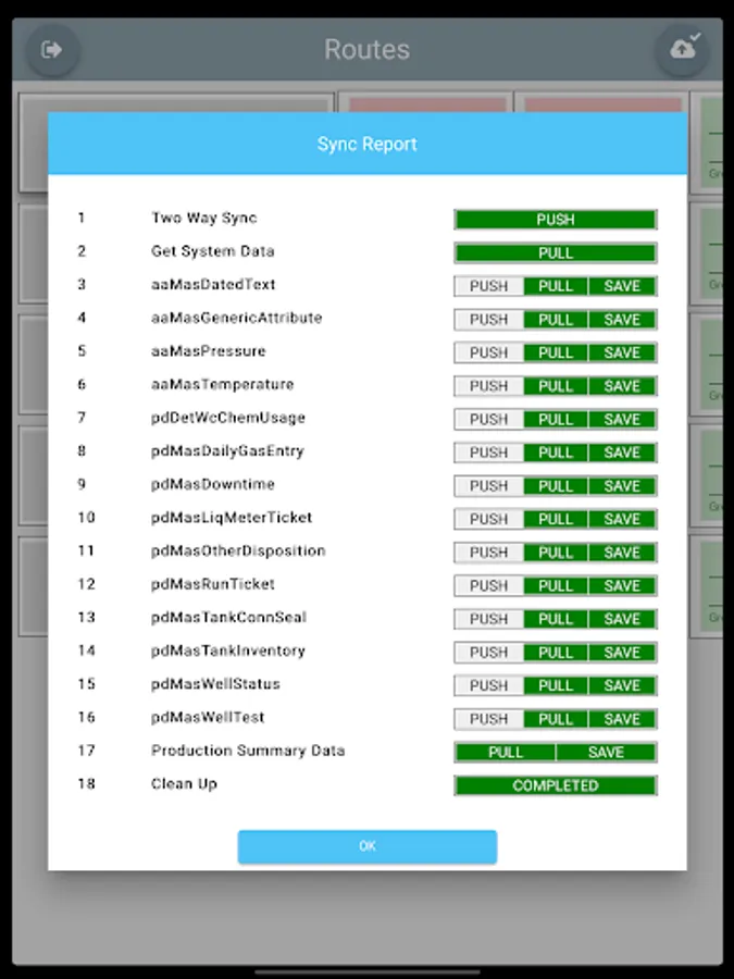 Routes, Stops, Instruments, Run Tickets, Well test, Daily Gas Entries, Seals, Downtimes, Etc.