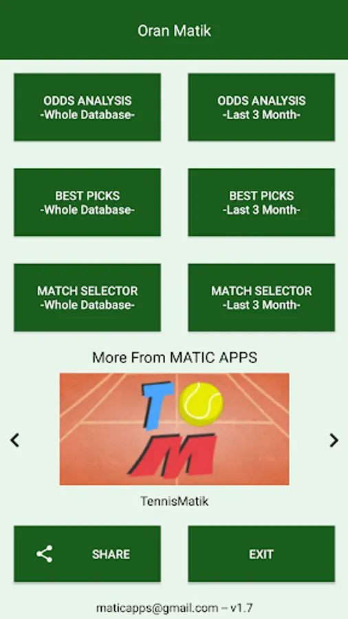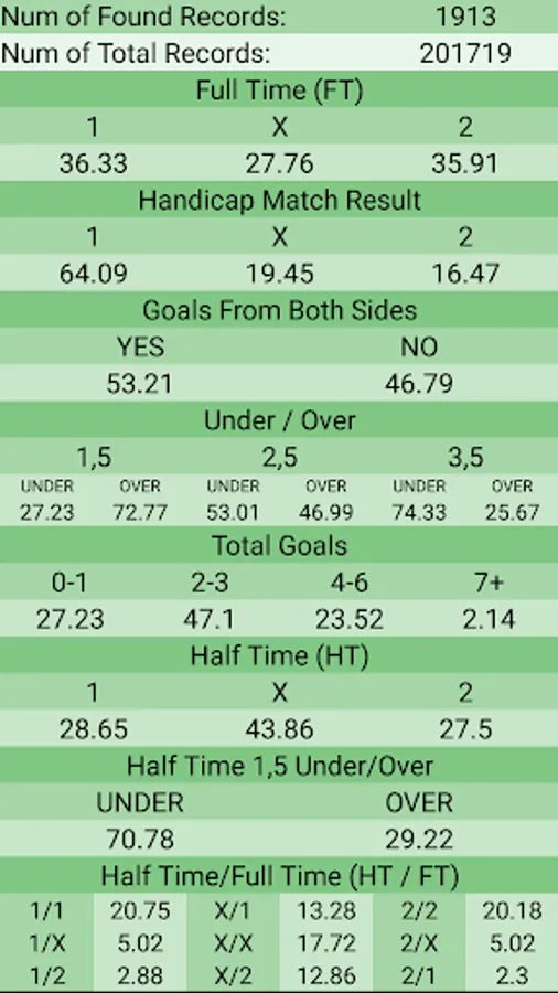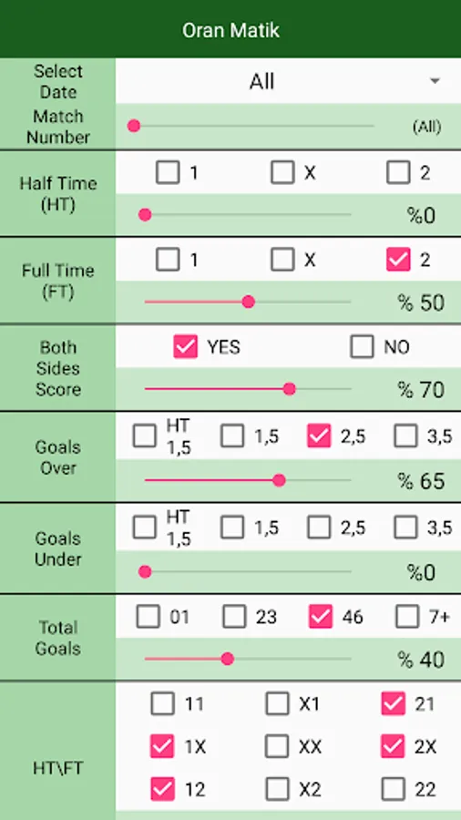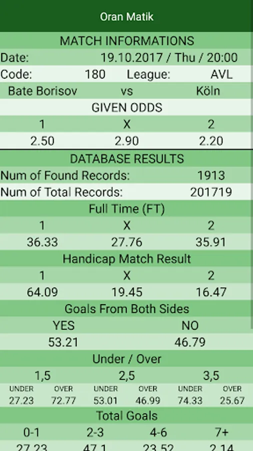 OranMatik is an easy-to-use program that compares the odds of opening matches to the odds of matches played since 2004 and shows the percentage of match results that have the same odds.