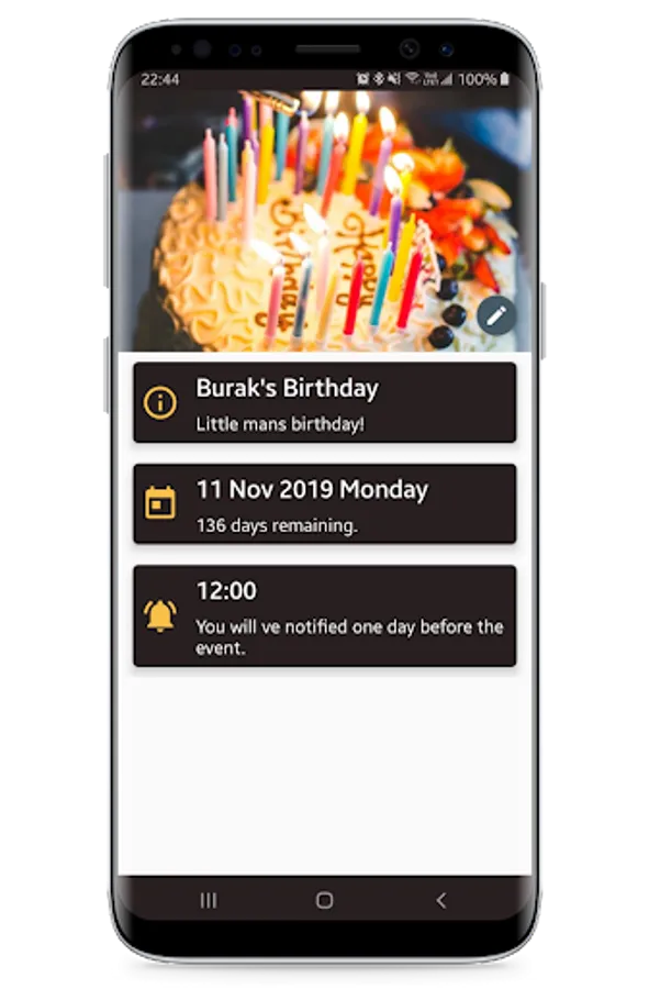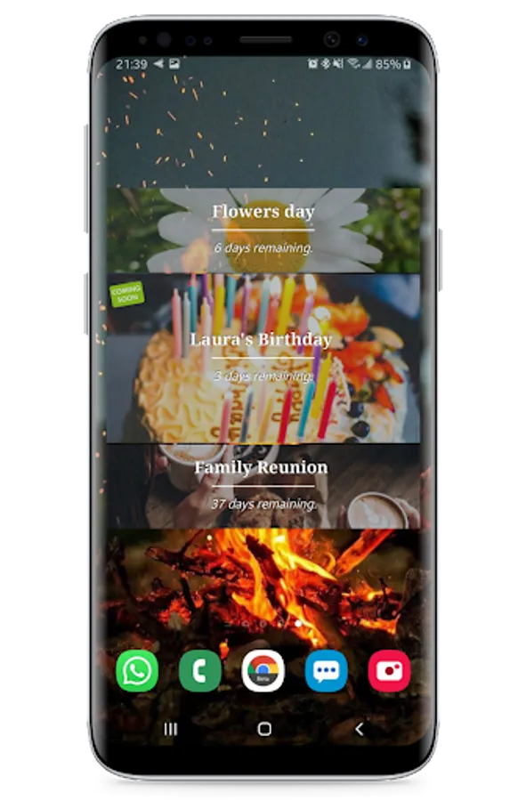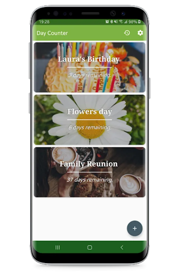Day Counter App is a modern looking countdown tool to remind your Anniversaries. Place widgets on home screen to keep in touch with Event Cards, everyday. Synchronize your custom Event Cards between Android devices. Store precious memories to the cloud and never lose them. For many features like widgets, you don't have to buy premium upgrade. Also we offer you some ad-free campaigns to enjoy Day Counter clearly.