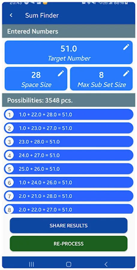 Imagine you have a number set and, some of these numbers create a given target number when they summed. In real world problem, we have a group of people who has to pay different amounts of fees to the bank. These fees are comma seperated and generally unique. The bank tells us that some people didn't pay and the total unpaid amount; but it does not mention how many people and who did not pay. We know unique amounts that people should pay. This app helps to find out which unique amounts (puzzle pieces) created the total number(completed puzzle.)