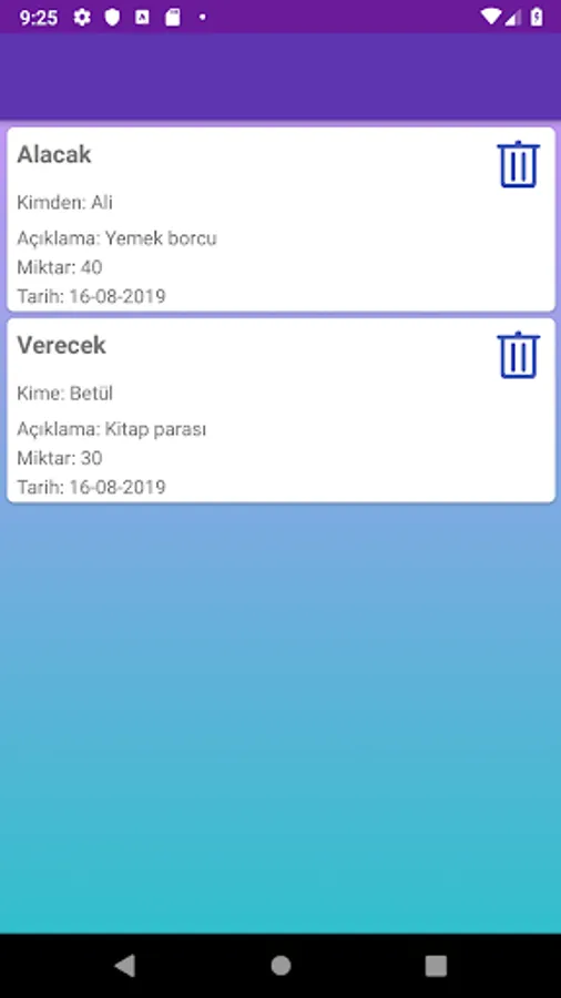 Debt Book application allows you to record the debts you have given and received. You can share your opinions, suggestions and problems related to the application to henesgokdag@gmail.com.