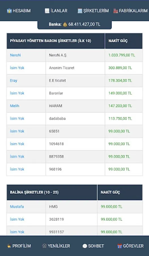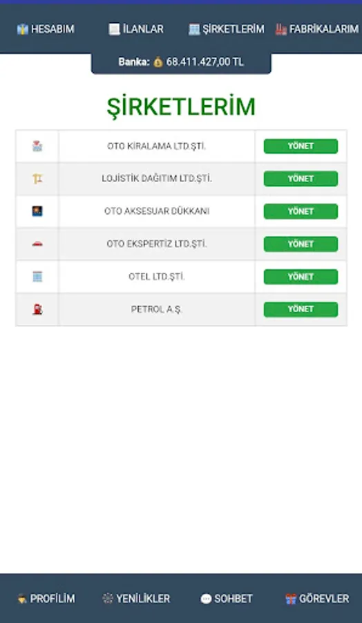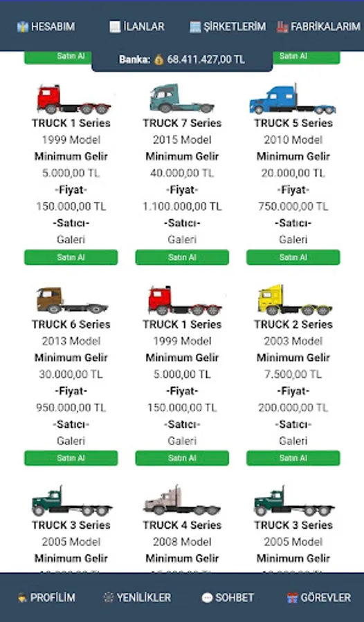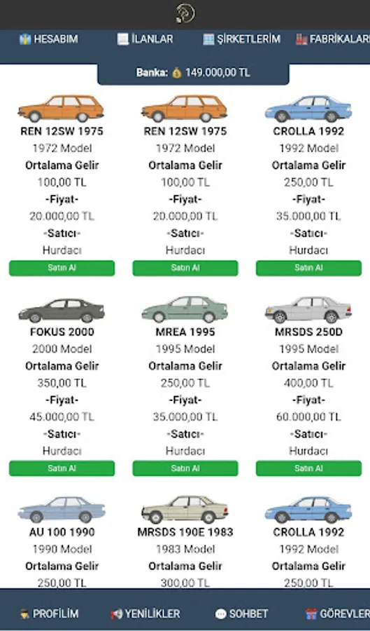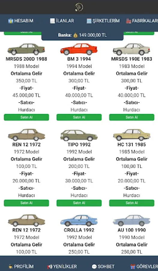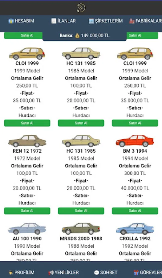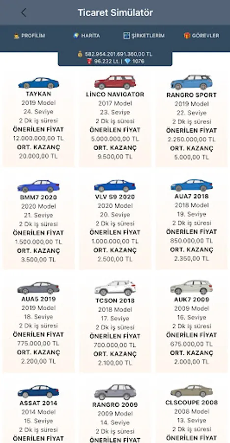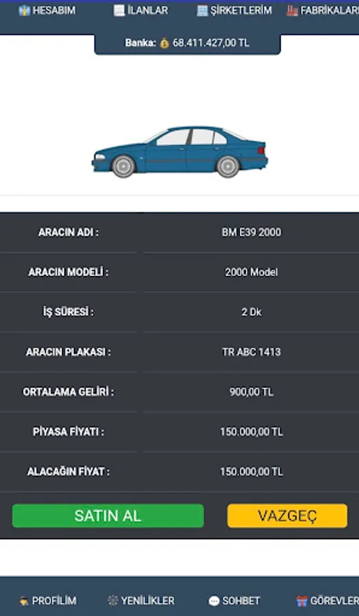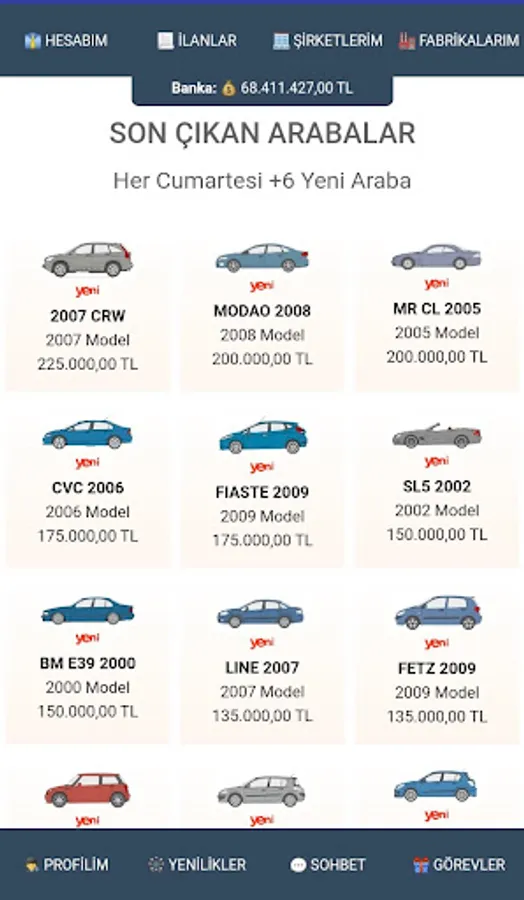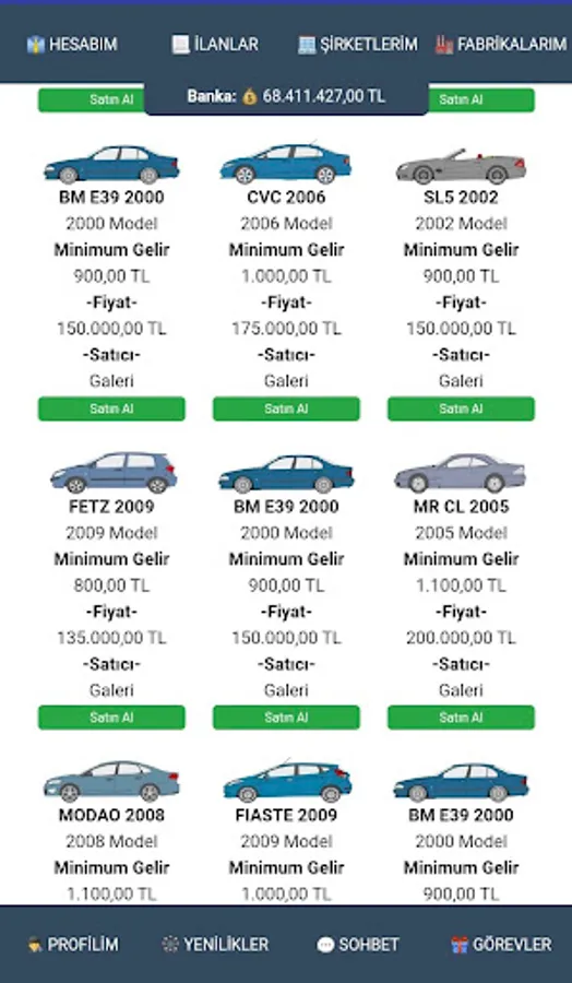 Purpose of the game : To increase the money given to you when you start by multiplying. You can buy and sell cars for this. You can only earn trading income by buying and selling cars only from real players and selling them to real players. You can add money to your money by building factories and producing vehicles. Qualify to enter the game's barons list.