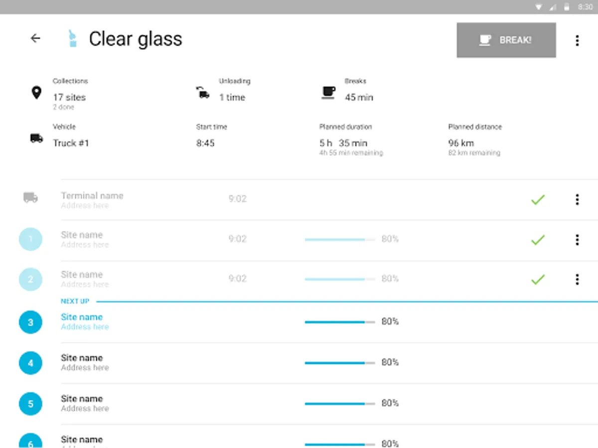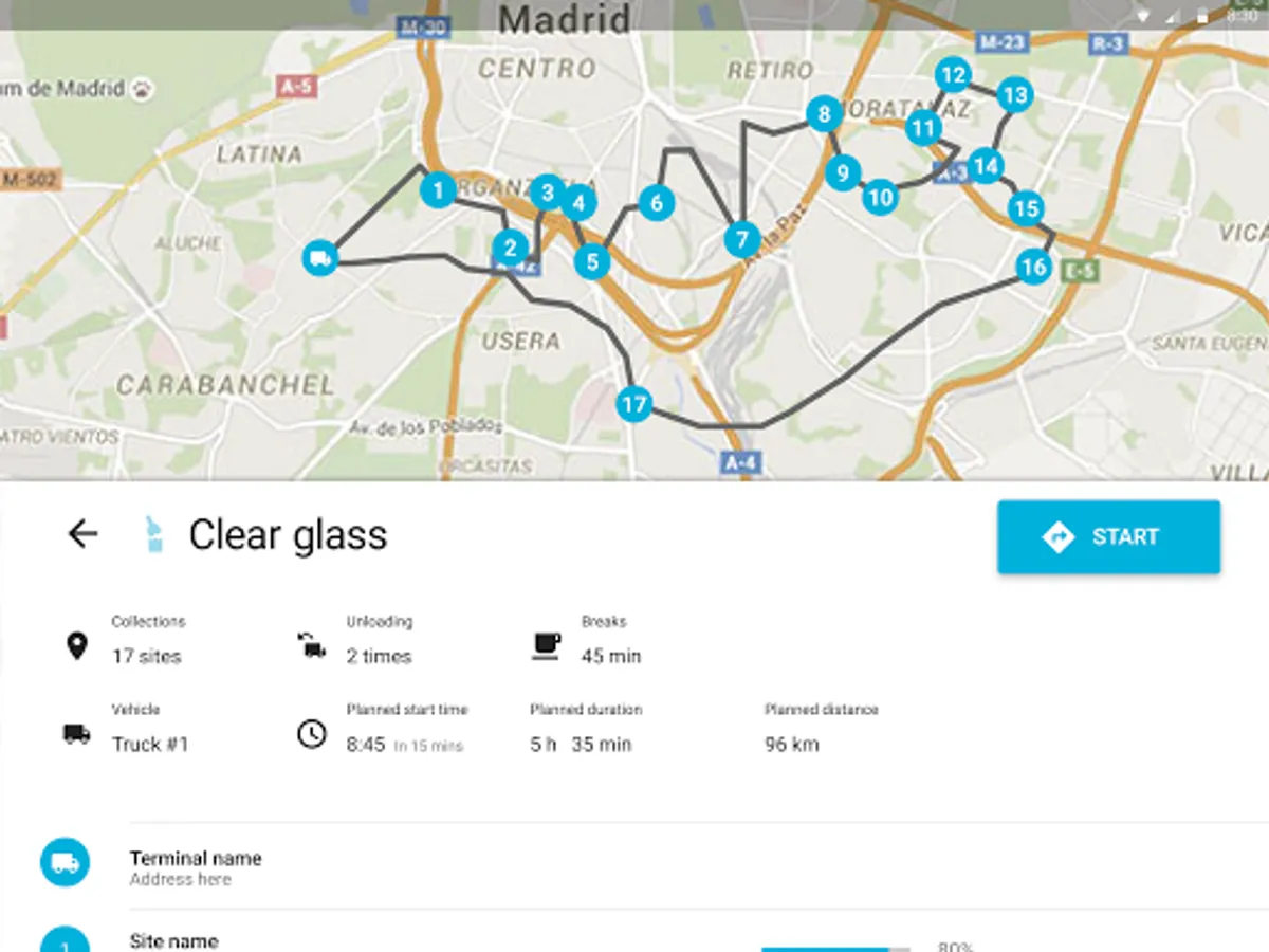 - See site lists in optimized collection order based on historical fill level, fill-up estimations and collection costs