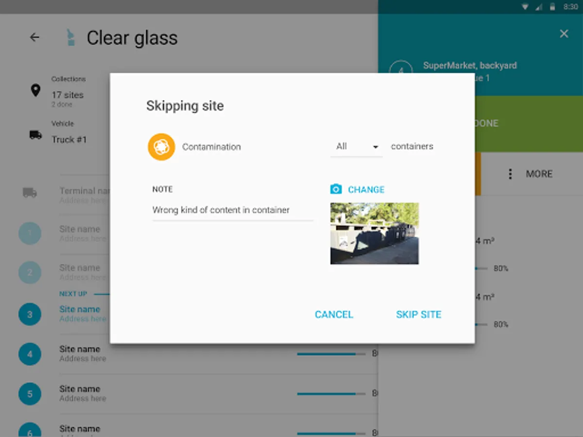 - Mark sites as collected or skipped