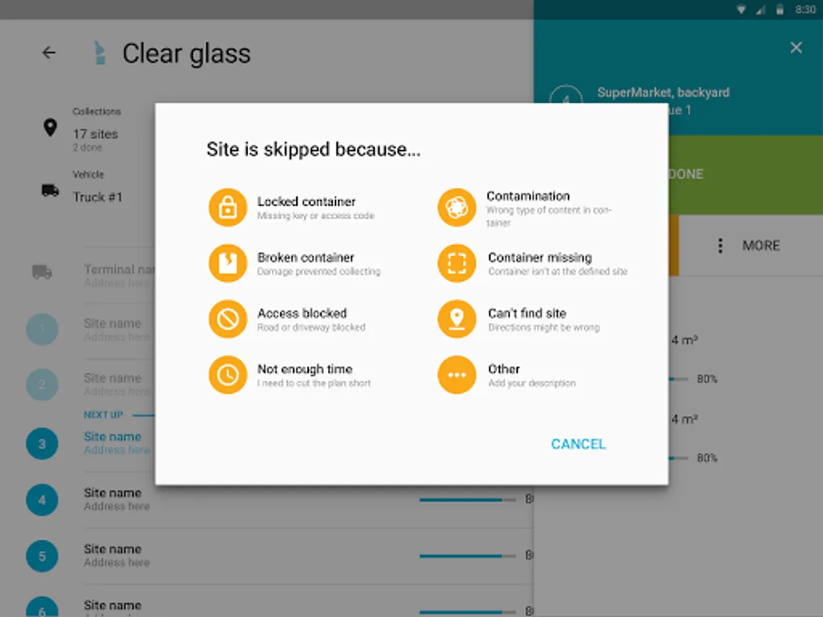 - See full list of sites per collection plan including address, container, fill level and other details