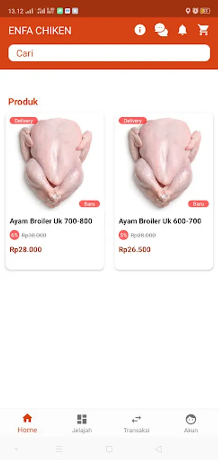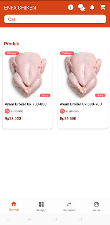 Meet Enfa Chicken, a shopping application for all chicken products. There is always the cheapest price and ready to deliver to your place.