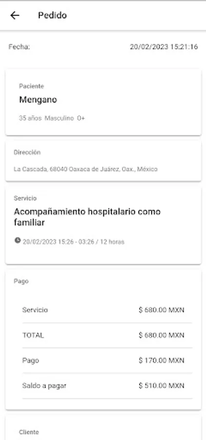 Application for nurses where requests for nursing services will arrive. From where they can see the basic information of a service request, to decide whether or not to attend the client's appointment.