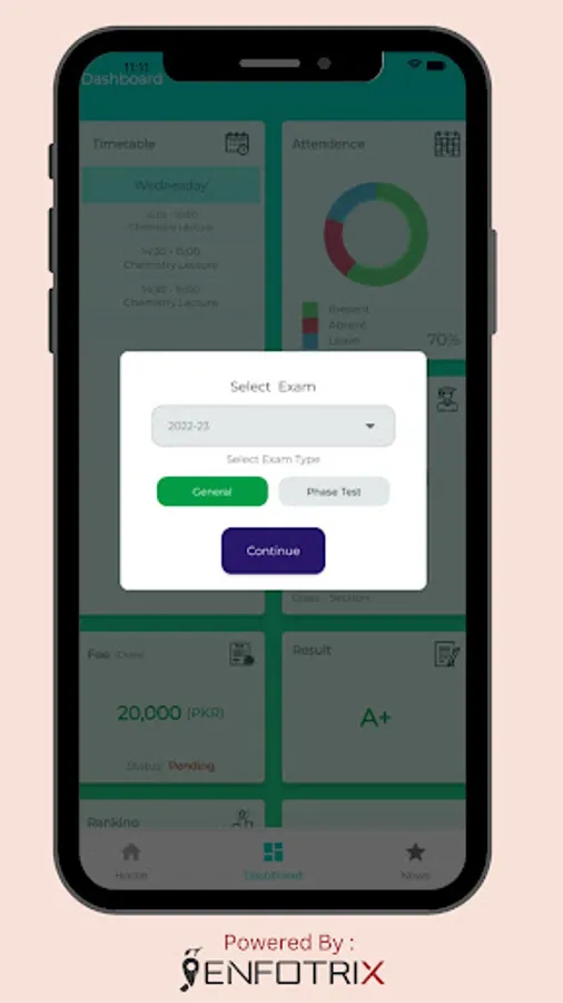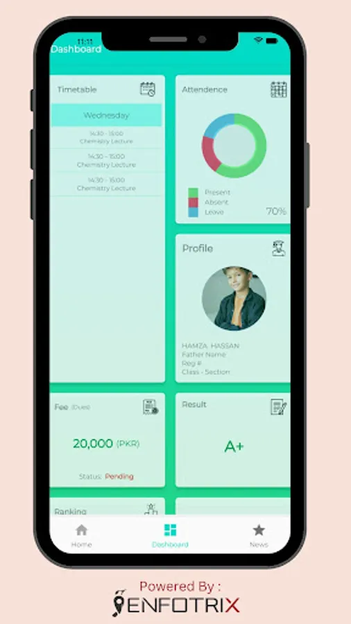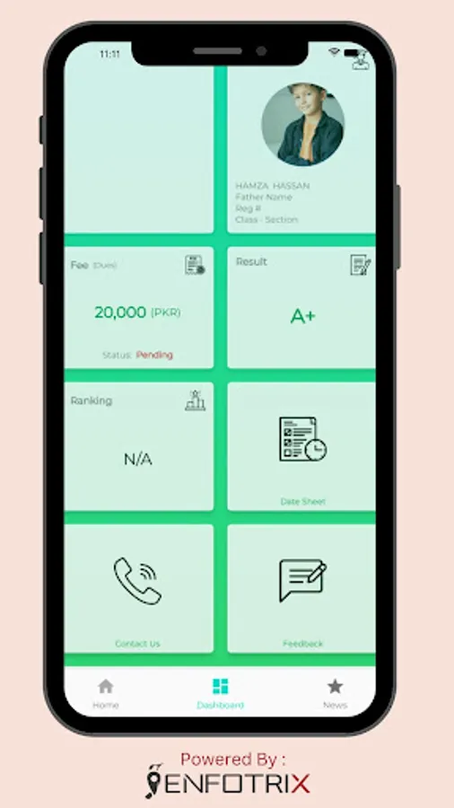 The app contains all the data related to the students in one place so that students can check their details and parents can monitor their children's progress.