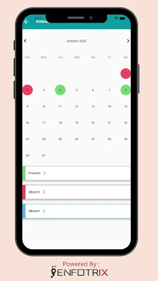 Attendance section contains all the attendence history of the student (Present, Absent, and Leave)