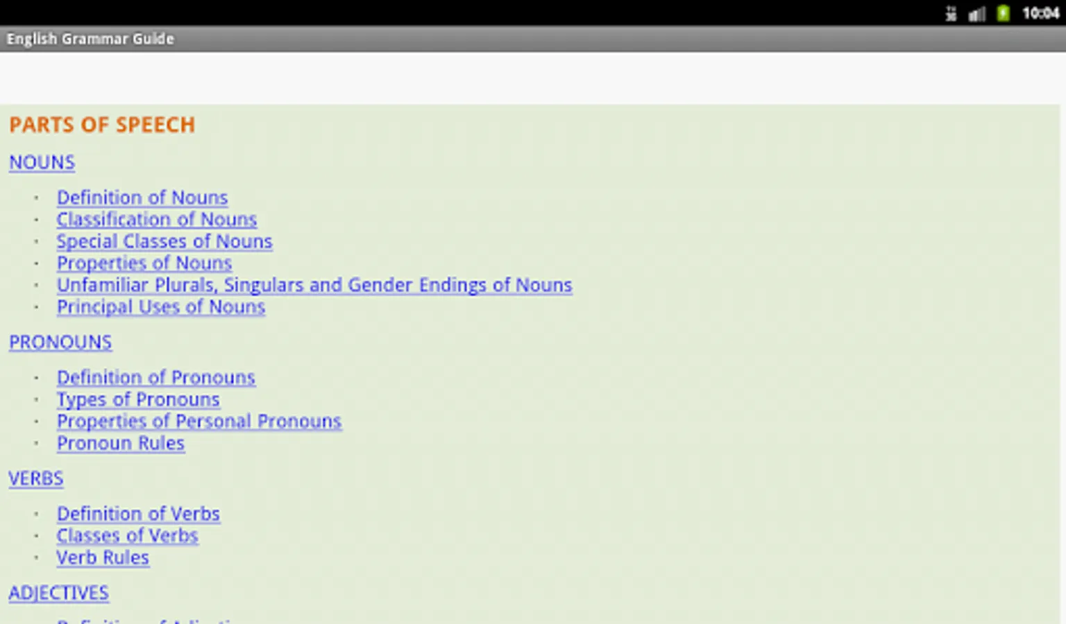 English Grammar Guide (EGG) is a handy English language reference guide that contains information about: